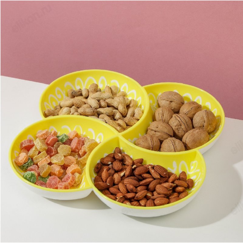 Менажница 28см 4-хсекционная пластик бело-желтый