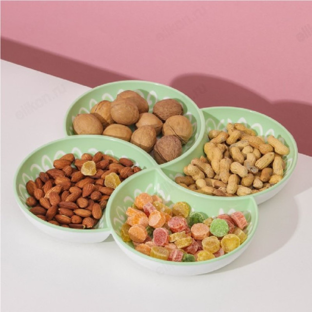 Менажница 28см 4-хсекционная пластик бело-зеленый