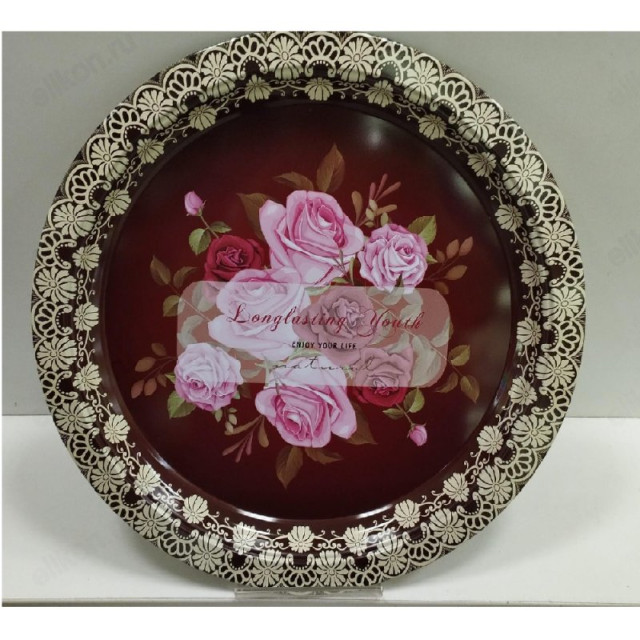 Поднос металл Цветы круглый 35,5 см ПЦ-35,5