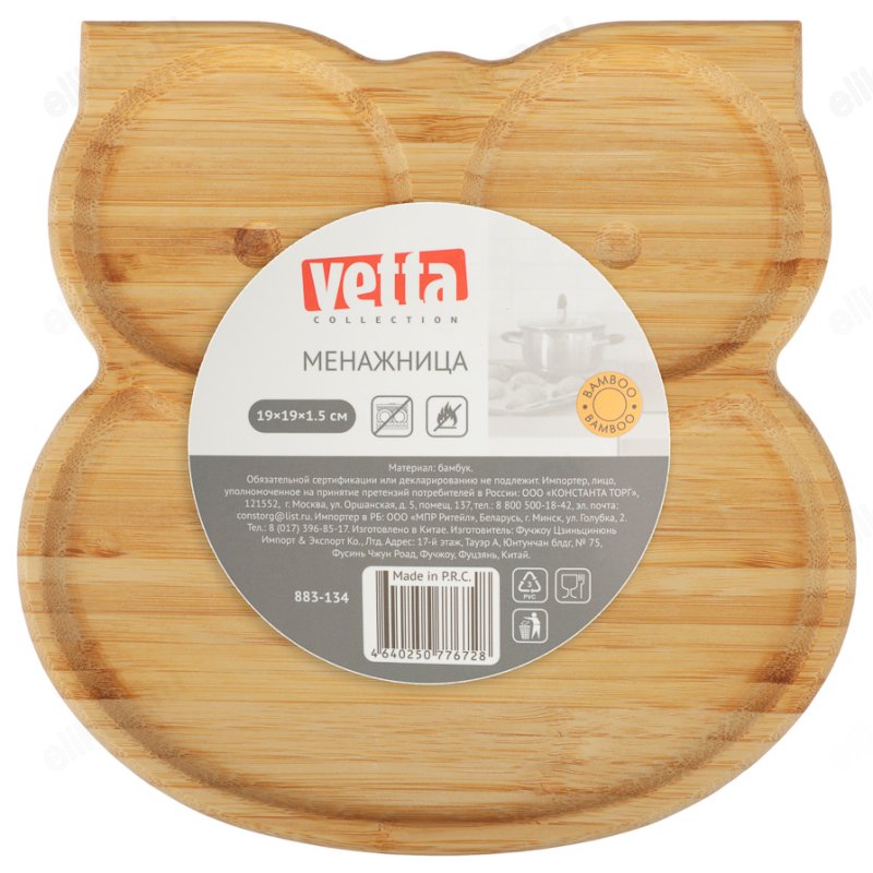 Бамбуковая менажница VETTA 19*19*1.5 см в форме совы украсит праздничный и повседневный стол и прекрасно подойдет для подачи сухих закусок, а также нарезок и фруктов на общий стол. Разделена на 3 отсека. Идеальное решение для подачи ореховой смеси, сладостей, сухариков, сыра, винограда, оливок на стол.