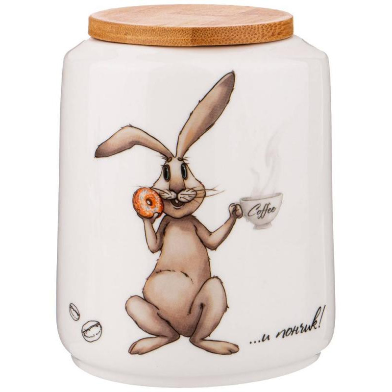 2 предмета, фарфор/дерево, кружка 300мл, банка с крышкой 600мл
