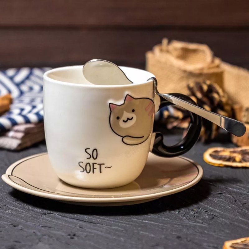 Кружка с блюдцем и ложечкой PM-005/022/052 Котик 220мЛ