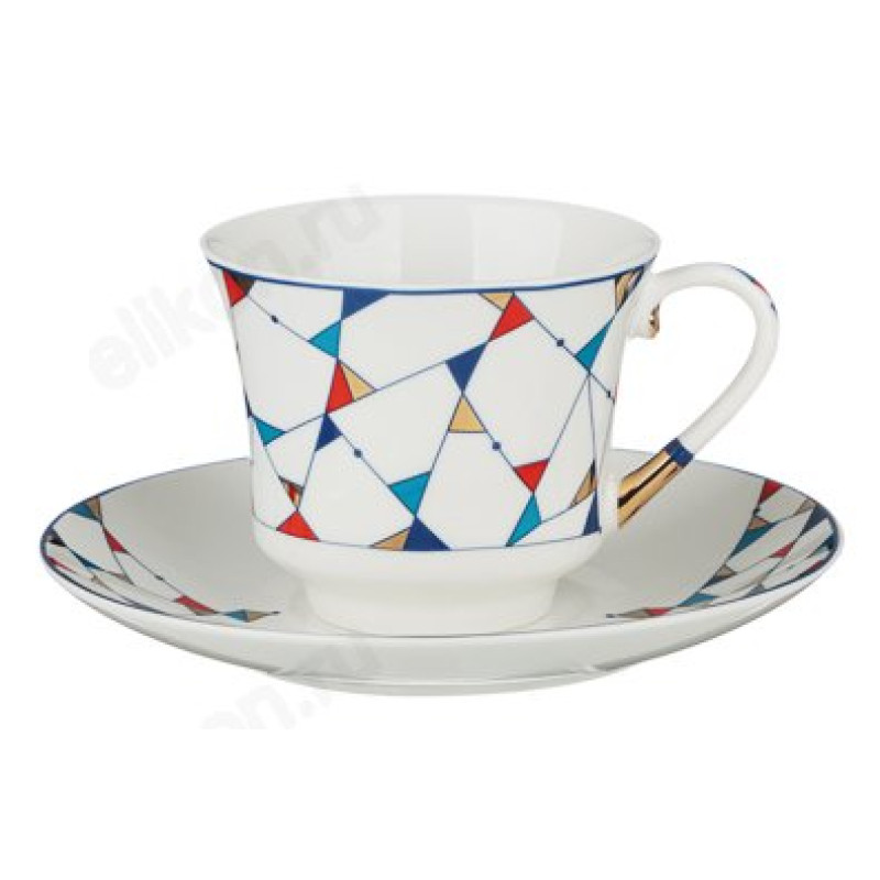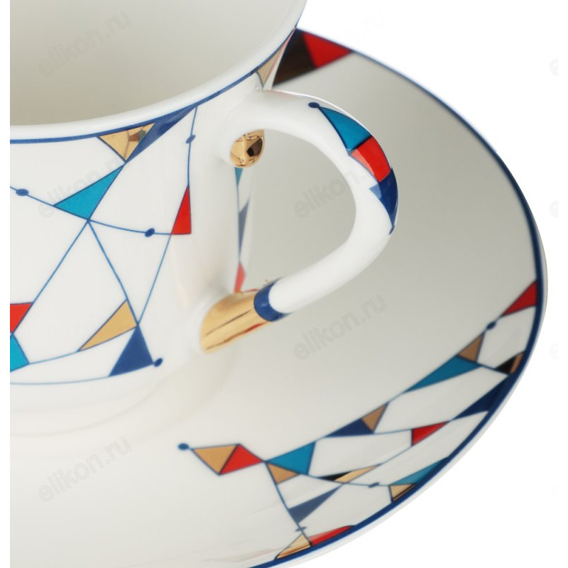 Стильный геометрический цветной орнамент удачно контрастирует с белоснежным фоном, смотрится привлекательно и делает сервировку оригинальной и неповторимой.