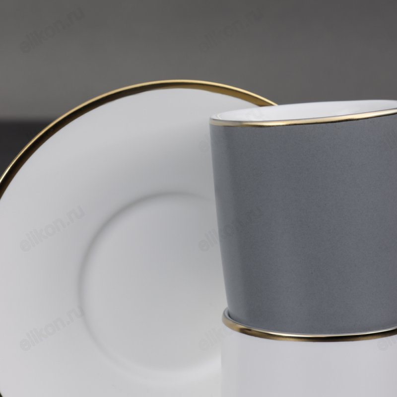Набор гармонично сочетает белую и серую палитры: одна чашка с блюдцем в изысканном белом цвете, другая пара — в утонченном сером.