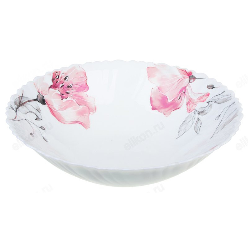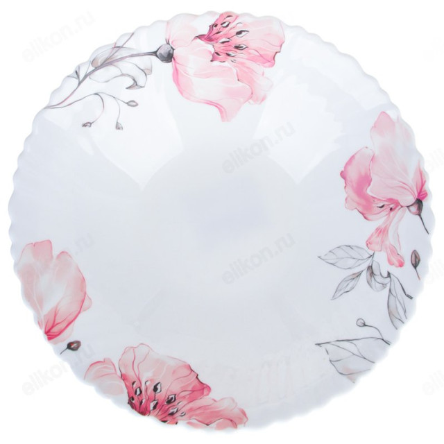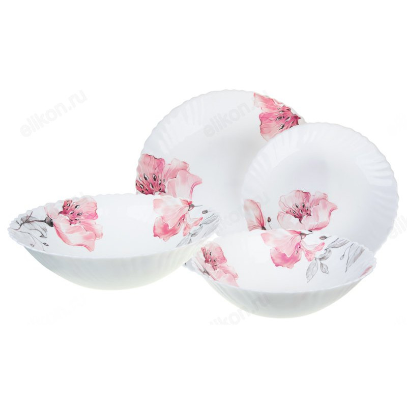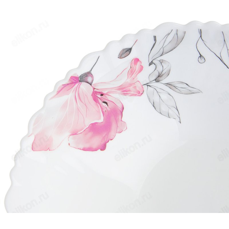 Нежный рисунок с розовыми цветами на белом фоне придает каждой тарелке особую утонченность, превращая обычную трапезу в праздник.
