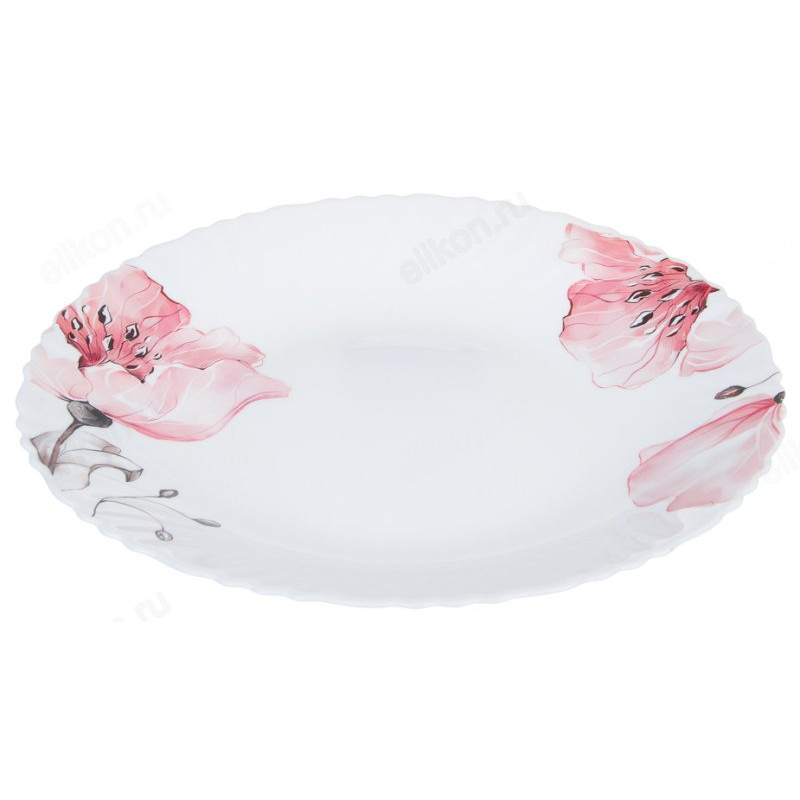 Нежные розовые цветы на белом фоне добавляют тарелке романтичный и утонченный вид, который прекрасно дополняет любую обстановку.