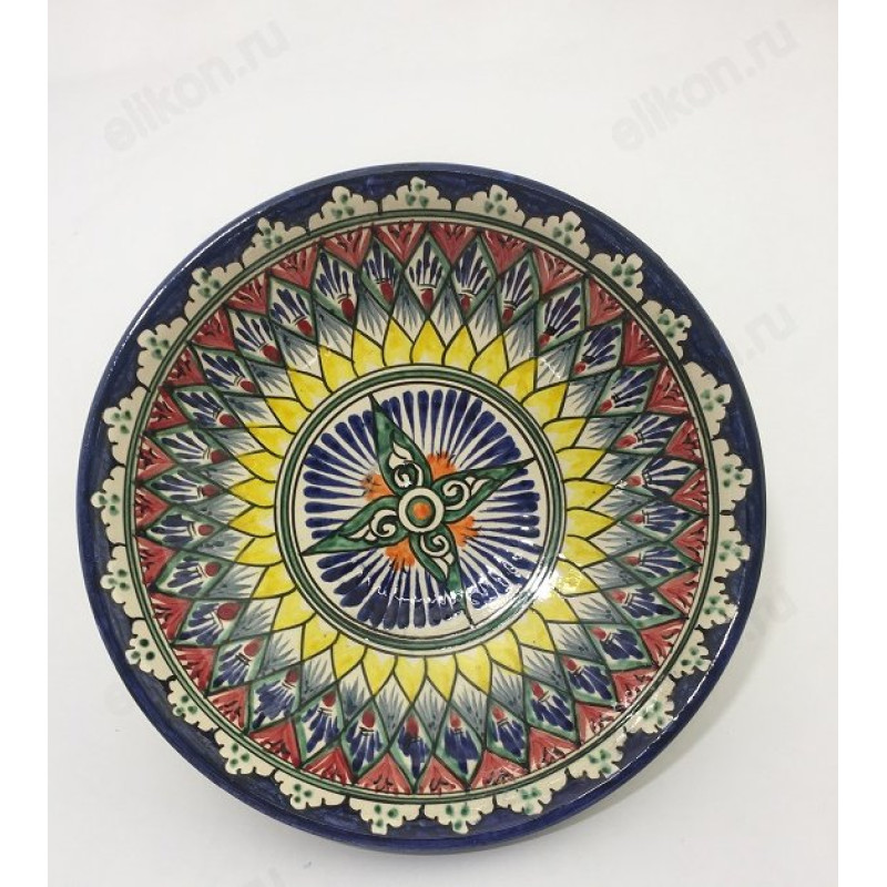 Очаровательная тарелка диаметром 22 см. из Риштанской керамики с привлекательными оригинальными, нанесённые вручную, восточными узорами, посуда созданная руками людей - посуда с душой!