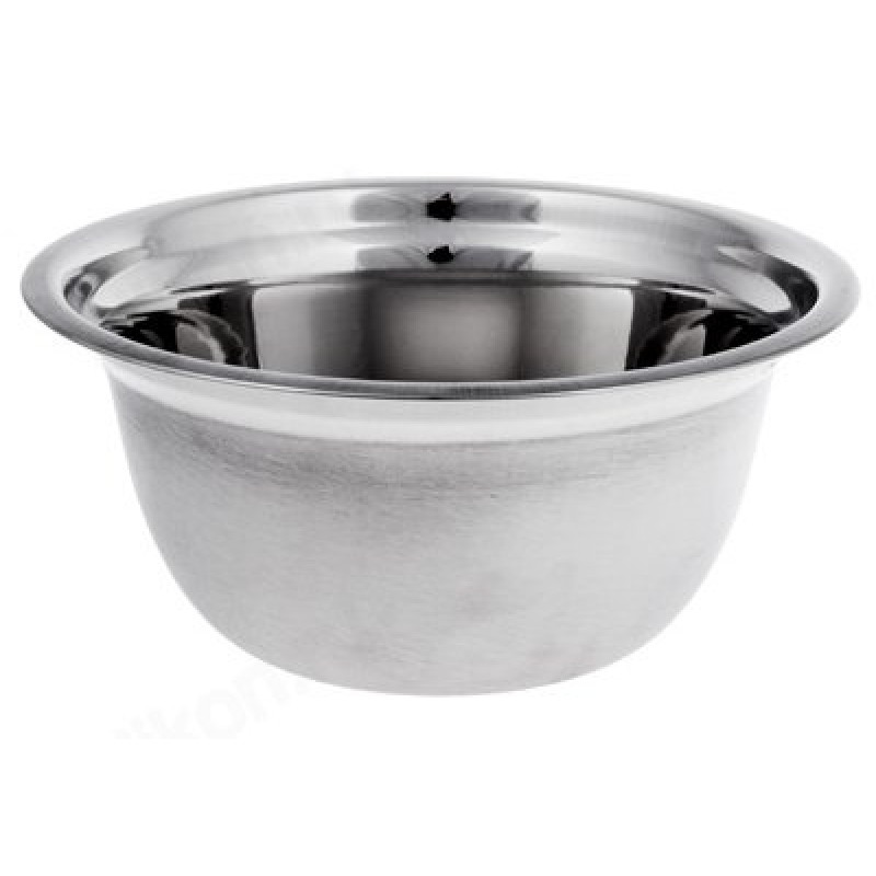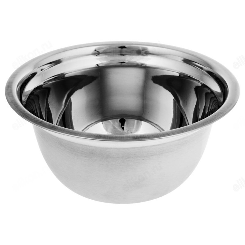 Салатник диаметром 25 см из нержавеющей стали с матовой полировкой снаружи и зеркальной полосой вдоль бортика.