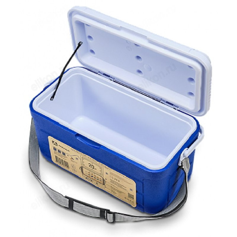 Изотермический контейнер с ручкой для переноски и ремнем для ношения на плече. Двойная стенка из ударопрочного материала с прослойкой из пенополиуретана. Герметичная контсрукция, ударопрочный корпус.
