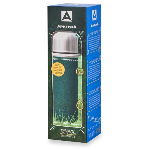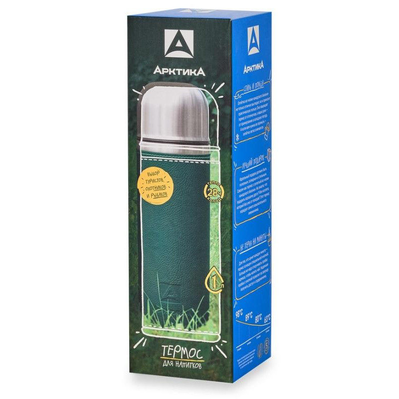 Термос питьевой 1.0л (в кожаной оплетке) зеленый АРКТИКА 108-1000-GNзел
