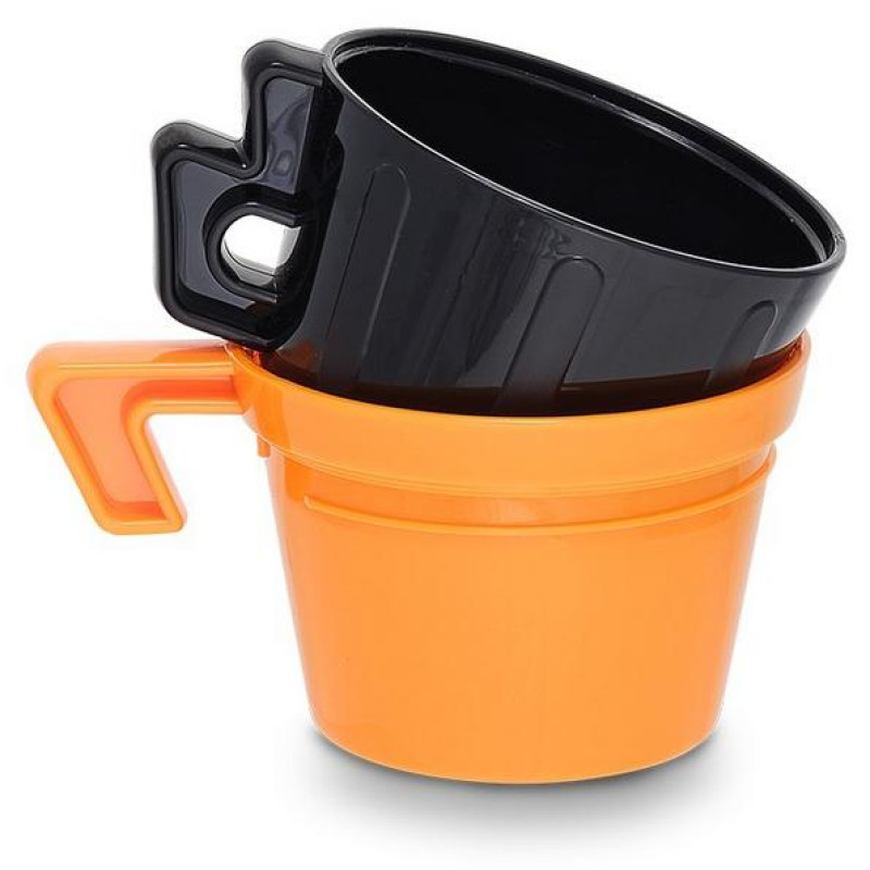2.2л, с узким горлом и глухой пробкой, оснащен усиленной ручкой из облегченного алюминиевого сплава, пластик на корпусе создает дополнительную защиту, большие кружки на 400/450мл с ручкой, съемный контейнер на дне для хранения