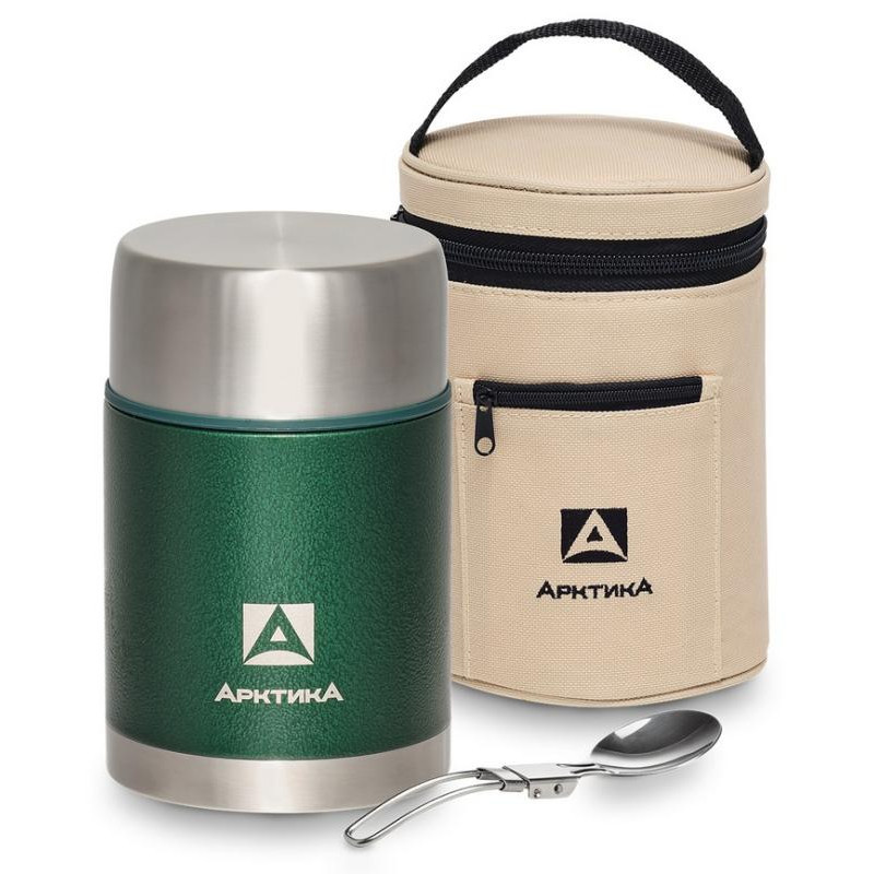 Термос для еды «» 0.8л с широким горлом, в чехле + складная ложка АРКТИКА 306-800А-GN
