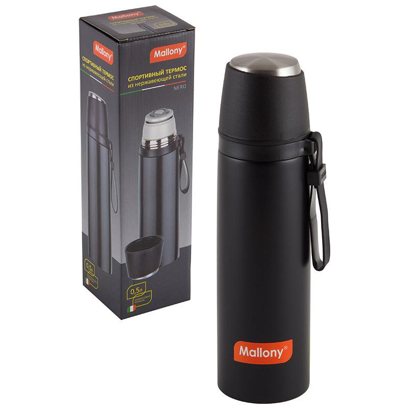 Термос спортивный с чашкой и силиконовым ремешком для переноски NERO (0.5л) MALLONY 005242
