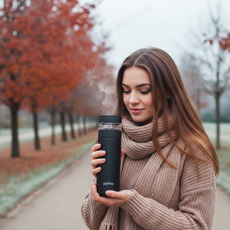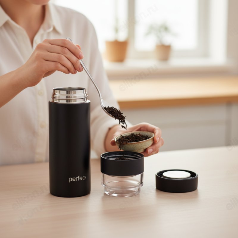 Термос металл PERFEO 0,4 л., нержавеющая сталь (PF_E1369) с фильтром черный