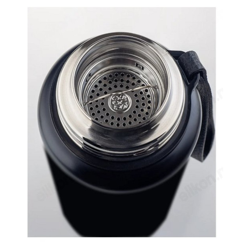 Термос для напитков с узким горлом и глухой пробкой, с ситечком.