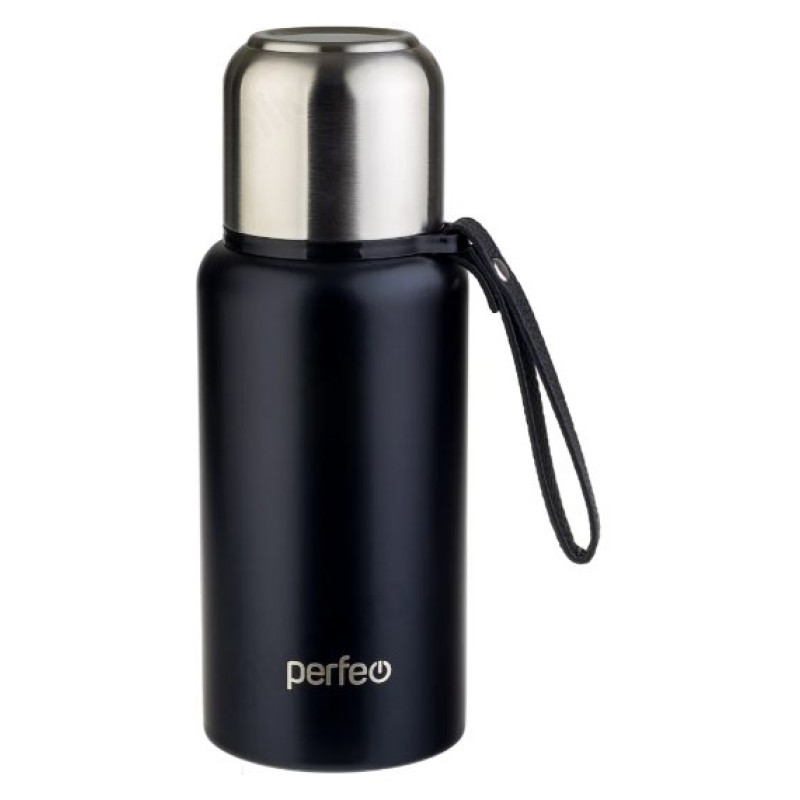 Термос PERFEO (PF_C3704) 0,5 л., черный, для напитков с глухой пробкой, ситечком, ремешком
