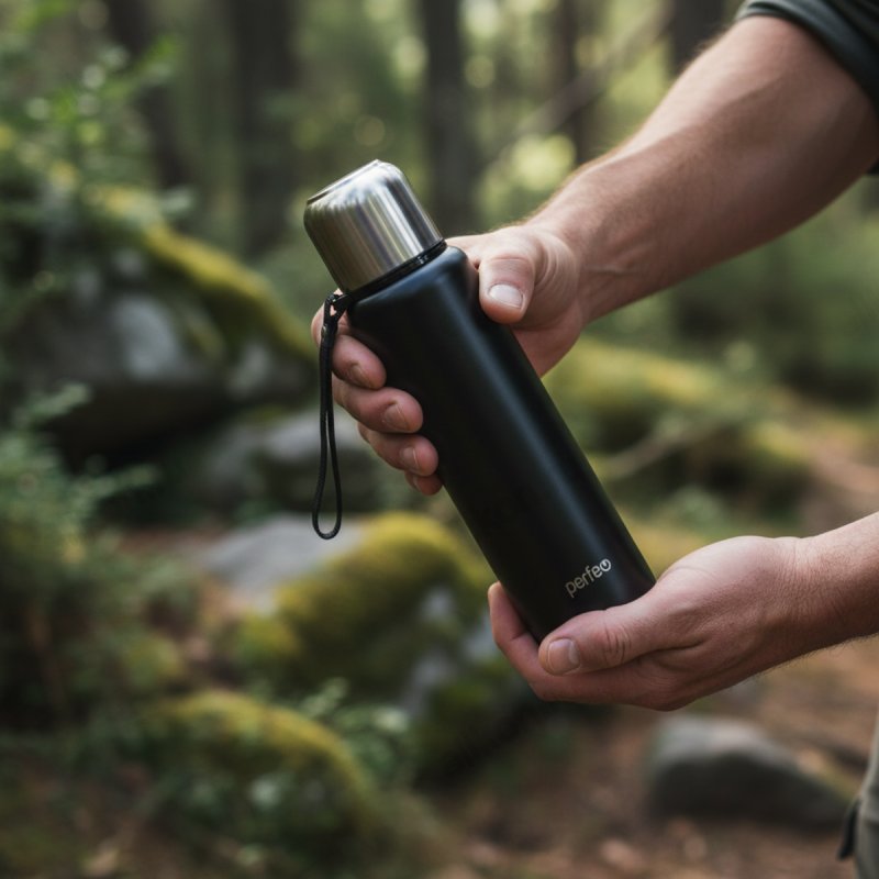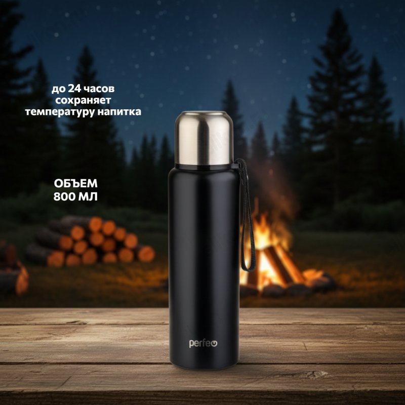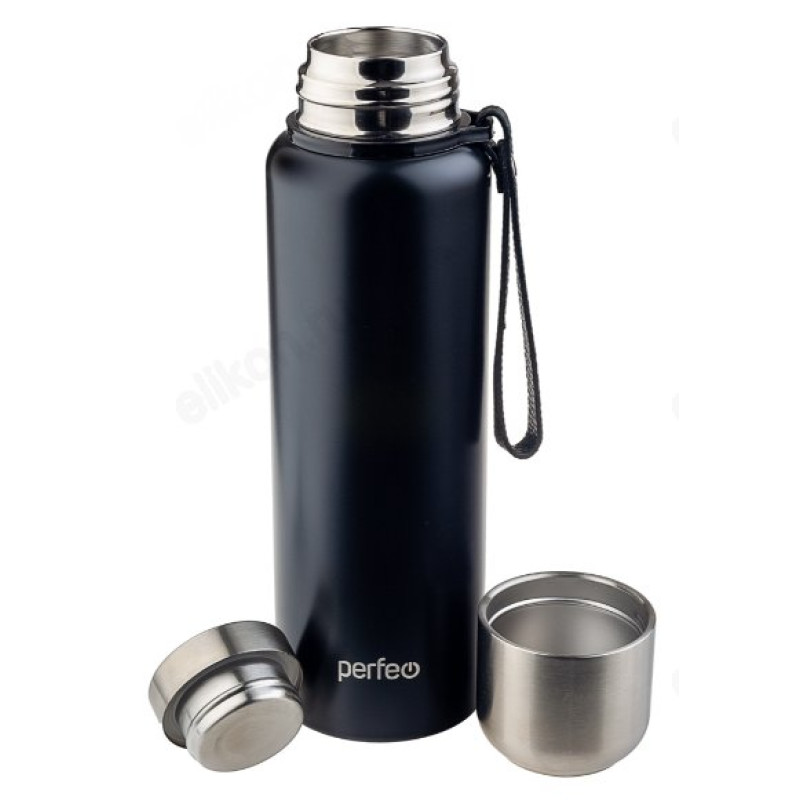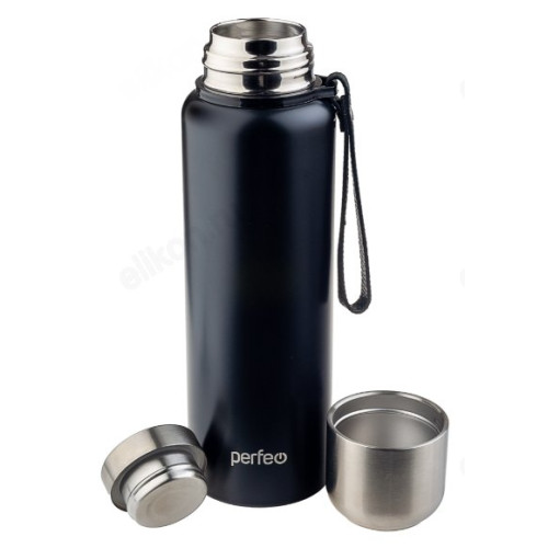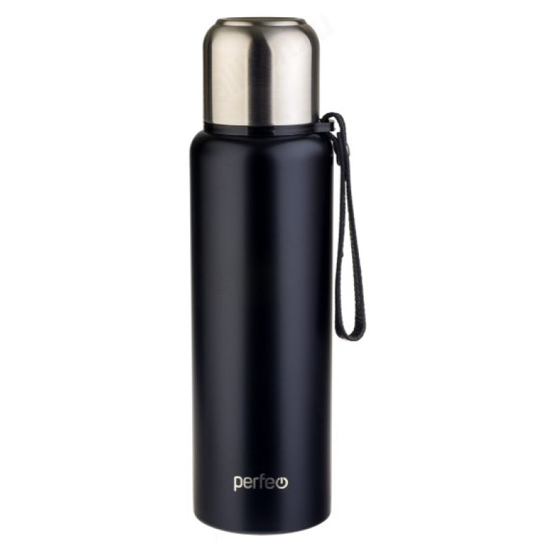 Термос PERFEO (PF_C3705) 0,8 л., черный, для напитков с глухой пробкой, ситечком, ремешком