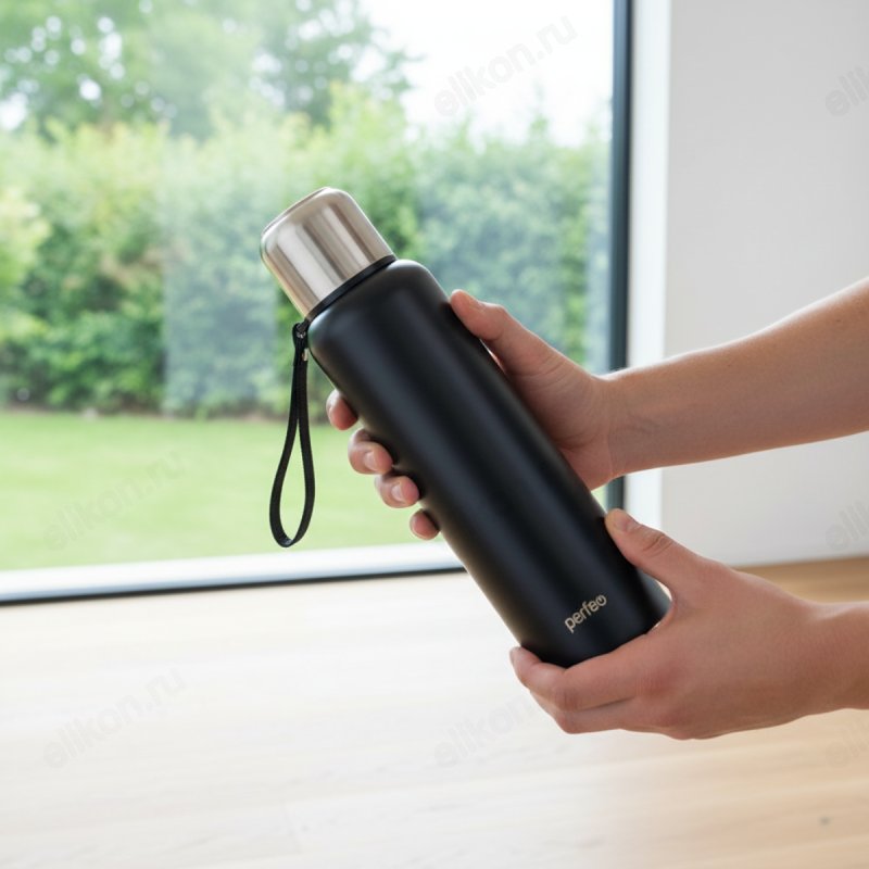 Термос PERFEO (PF_C3708) 1,5 л., черный, для напитков с глухой пробкой, ситечком, ремешком