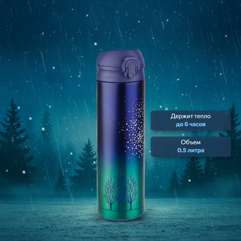 Термос металл PERFEO 0,5 л., звездное небо (PF_C3714) с крышкой-поилкой, ситечком