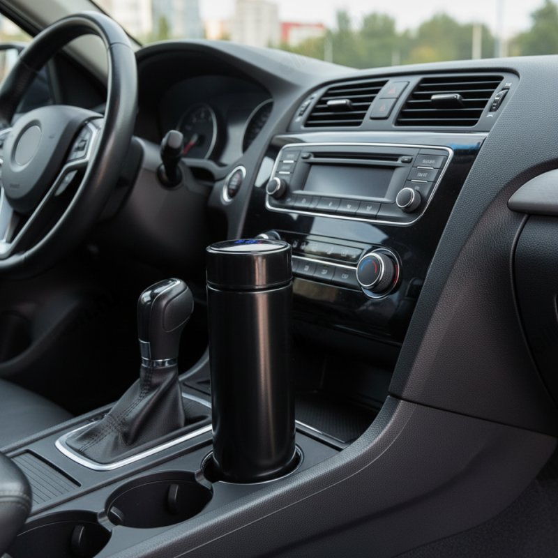В крышке встроен LED дисплей, отображающий температуру напитка.