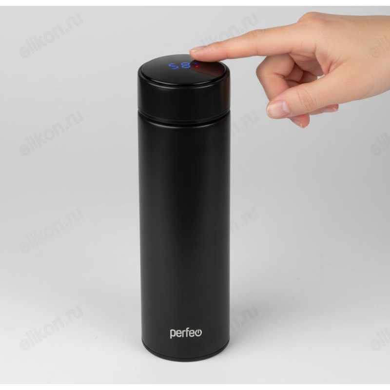 Термос металл PERFEO 0,45 л., черный (PF_C3719) с термомертом, ситечком