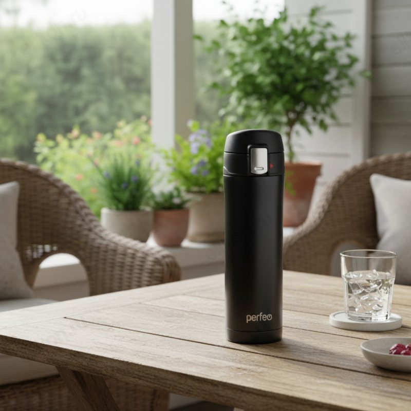 Термос металл PERFEO 0,45 л., черный (PF_C3722) с крышкой-поилкой, ситечком