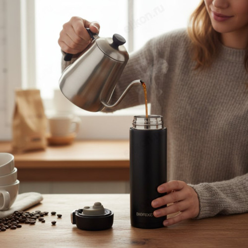 Двойные стенки сохранят напитки теплыми или холодными длительное время.