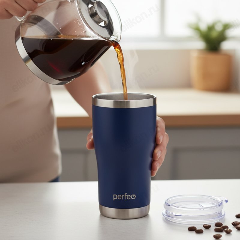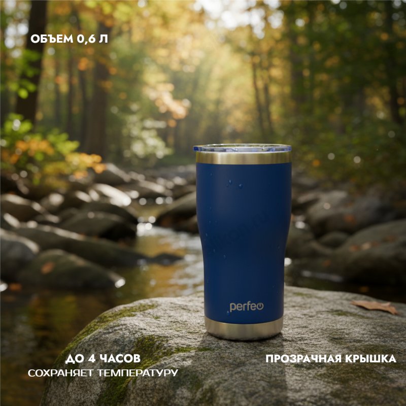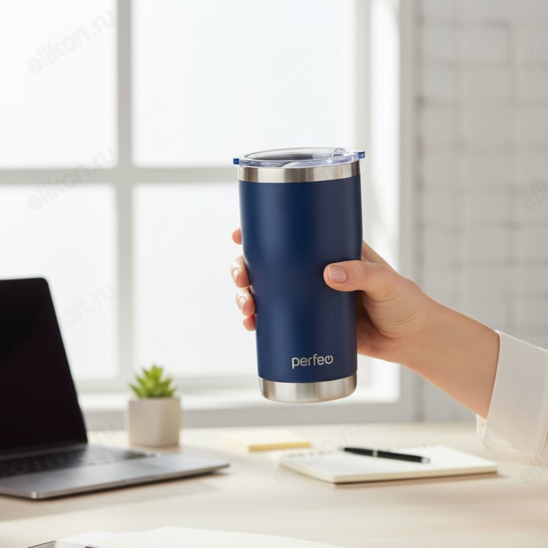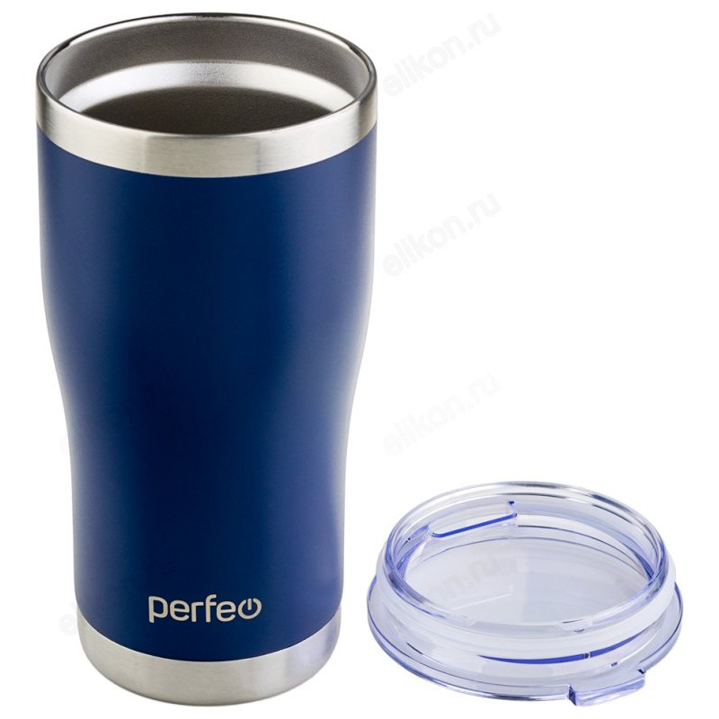 Термокружка PERFEO 0,6 л (PF_C3726) темно-синий, с прозрачной крышкой