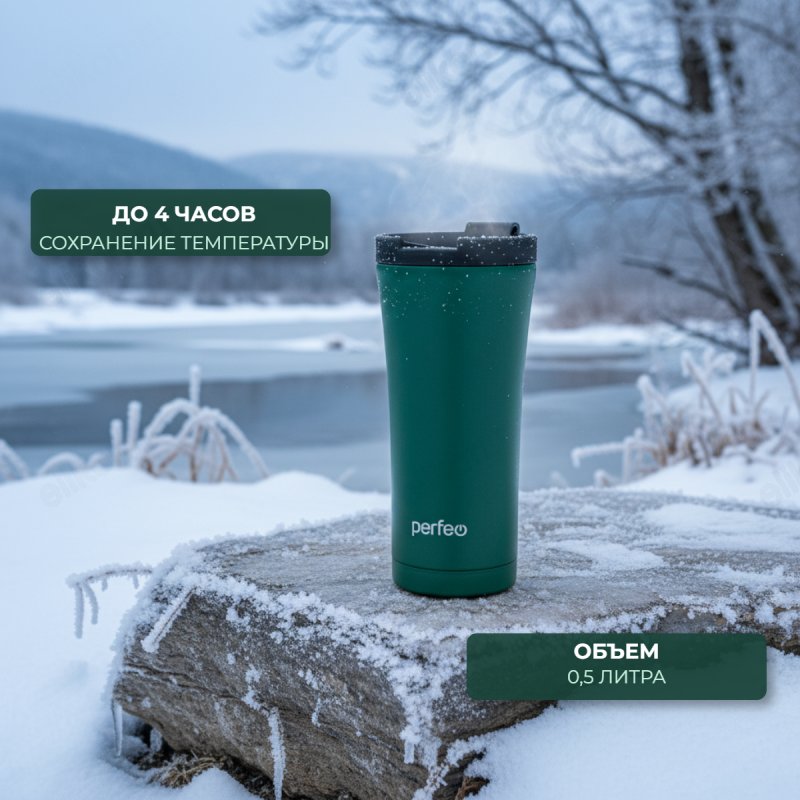 Термокружка PERFEO 0,5 л (PF_D0184) зеленый, с крышкой-поилкой