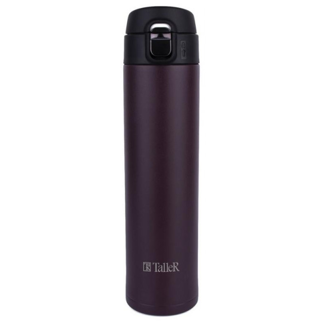 0.5л, сталь, высота 25см, d горлышка 5см, покрытие матовое фиолетовое, вакуумная кнопка, герметичная силиконовая пробка