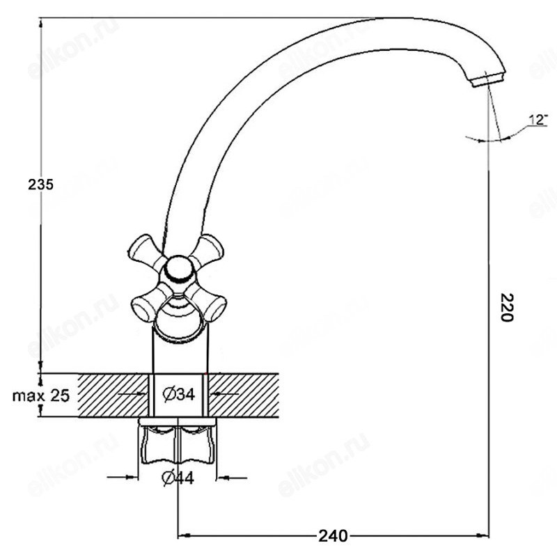 • тип крепления «гайка» — есть резьба, подходит для фиксации на металлической мойке.