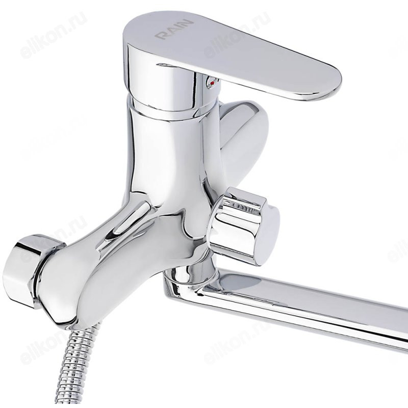 Смеситель для ванны RAIN «Гранат» с прямым изливом 35 см и картриджем 35 мм представляет собой полный комплект с душем и душевой лейкой, а также краном с прямым длинным изливом.