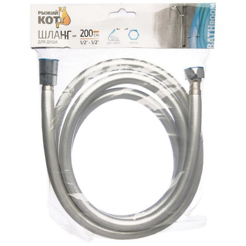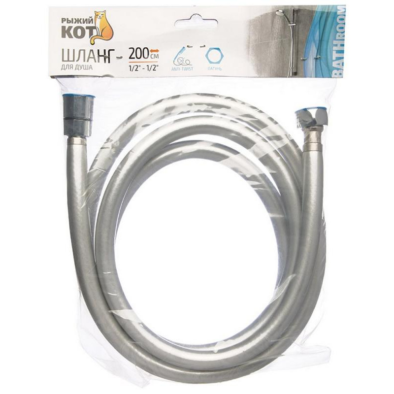 Шланг для душа антитвист 200см, PVC 1/2-1/2 РЫЖИЙ КОТ 106115