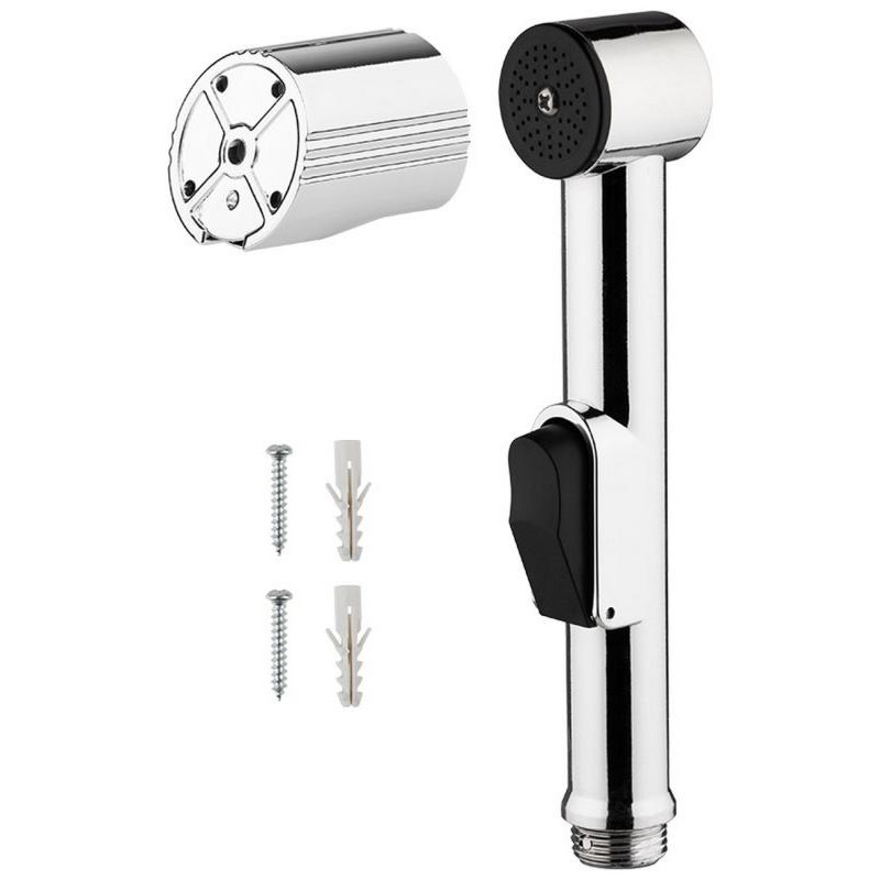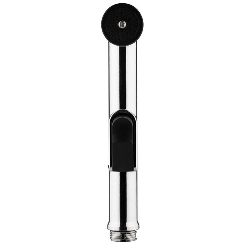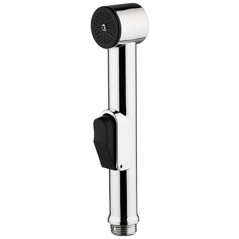 АБС пластмасса (хромированная на корпусе)/нерж. сталь, диаметр 30мм, длина 18см, соединение 1/2', кнопка подачи воды на корпусе, тонкое распыление, настенный держатель и крепеж в комплекте.