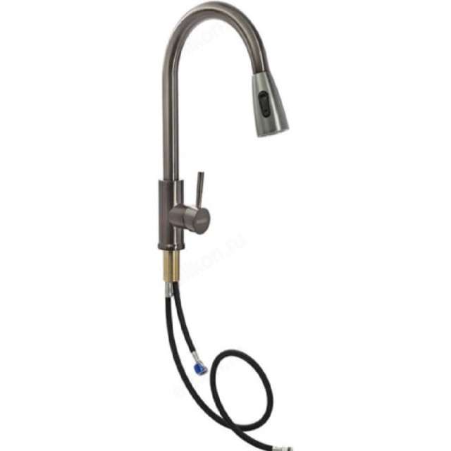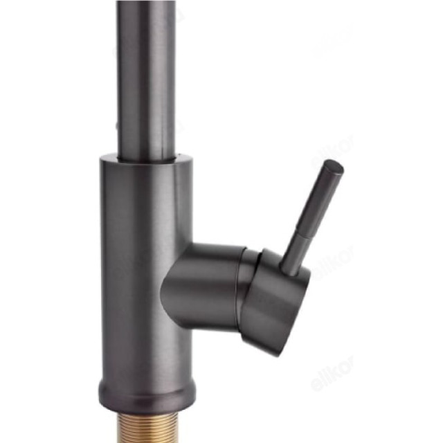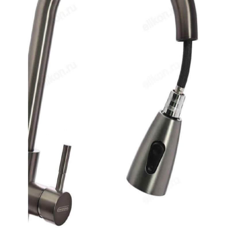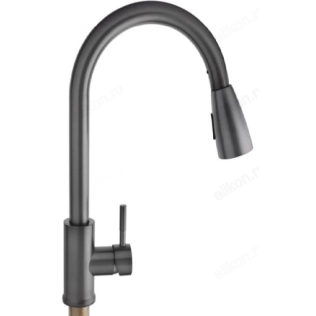 Смеситель для кухни СоюзКран SS01-E132 с выдвижным изливом. Высоту излива можно менять. Установите минимальную высоту, чтобы наполнить мойку водой, или максимальную, когда вам нужно вымыть большую кастрюлю. Максимальная высота излива - 40 см. Лейка смесителя с переключением режимов работы. Смеситель однорычажный: настраивайте напор и температуру воды быстро одной рукой. Водозапорный механизм - керамический картридж 35 мм. Собран без прокладок, из-за которых в смесителях бывают течи. Служит до 10 лет. Работает тихо и плавно. Смеситель из нержавеющей стали с покрытием цвета графит. Красиво выглядит. Служит долго. Не портится от перепадов температуры воды. Не выделяет вредные вещества. Крепление смесителя на гайке - можно установить на тонкую мойку. Керамический картридж чувствителен к качеству воды. Чтобы смеситель прослужил дольше, установите фильтры очистки воды.