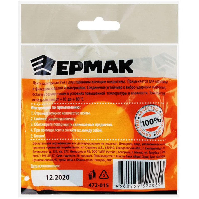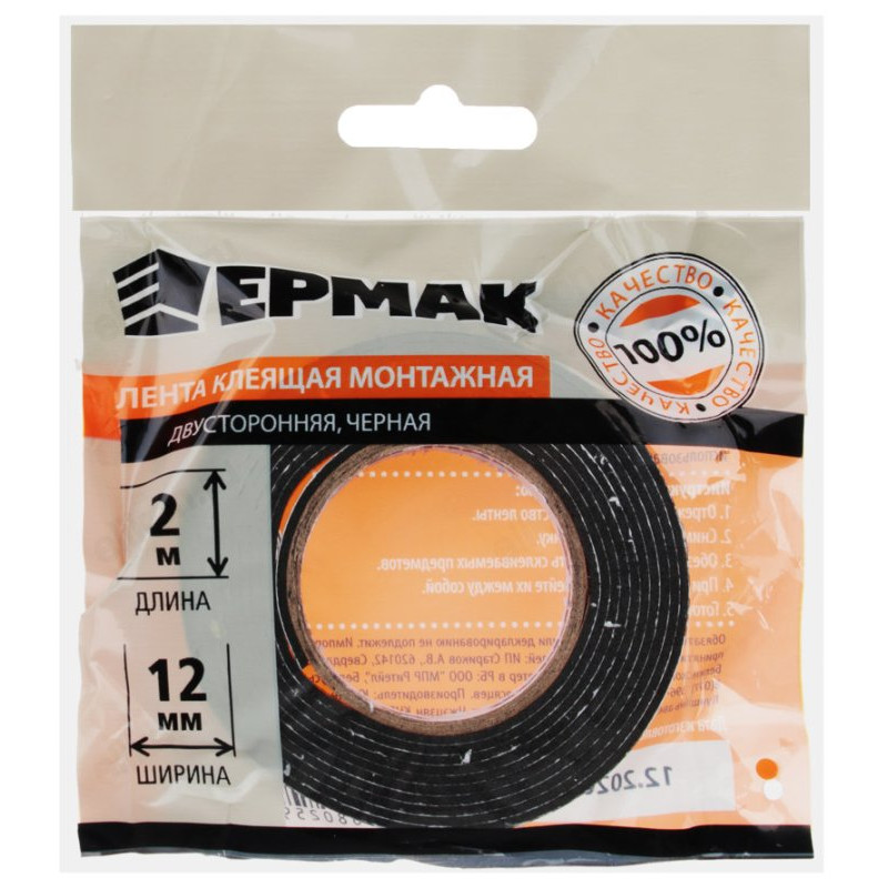 Лента клейкая монтажная ЕРМАК 12мм*2м 472-015