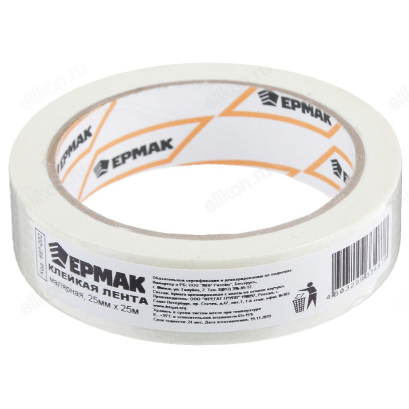 Лента клейкая малярная ЕРМАК 25мм*25м 687-002