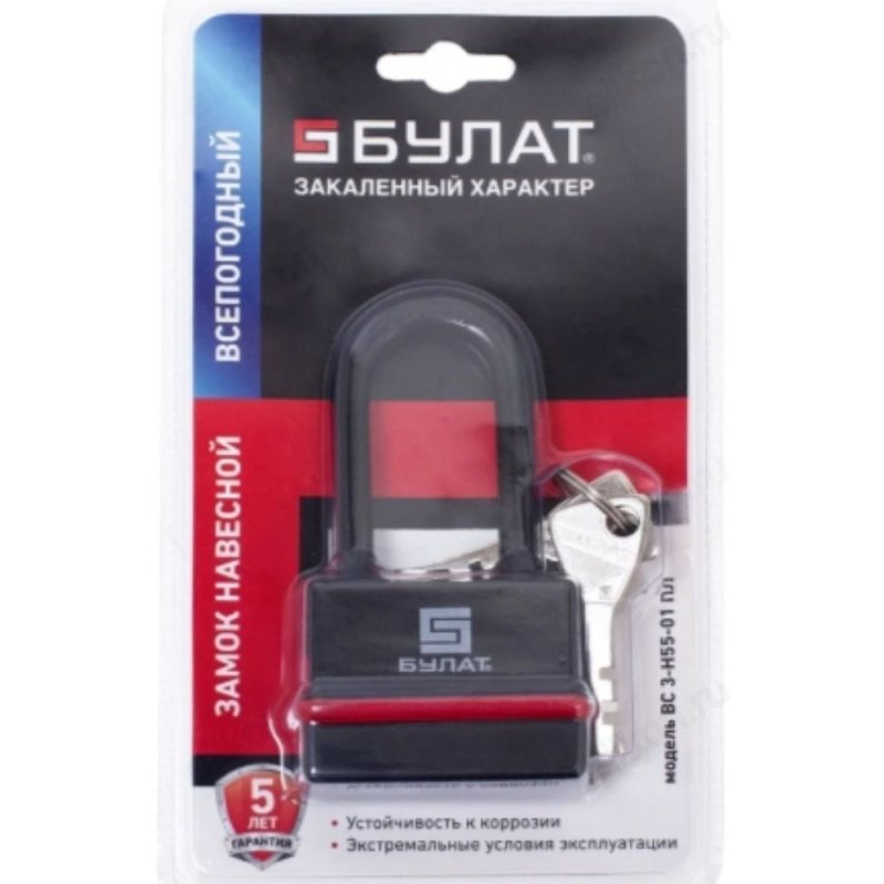 Замок навесной "БУЛАТ" ВС 3-Н55 ПЛ, 5 ключей, d=8мм, 53*36мм